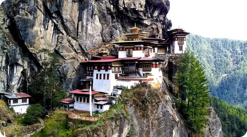 Nestled in the eastern Himalayas, Bhutan features majestic mountains, pristine forests, and rich biodiversity, maintaining strong environmental protections and carbon-negative status to preserve its natural heritage for future generations.