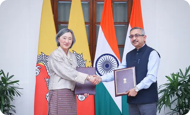 Bhutan maintains a strong and trusted partnership with India, grounded in mutual respect, shared security interests, and economic cooperation. Hydropower projects, trade agreements, and infrastructure development continue strengthening bilateral relations and regional stability.