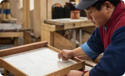 Dezo is the traditional method of handmade paper production using natural plant fibers. The process requires patience and skill.