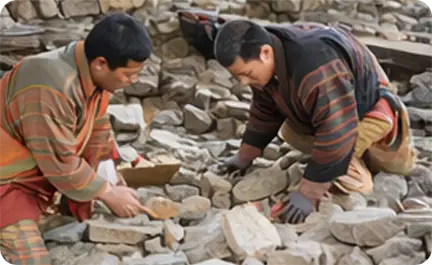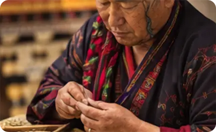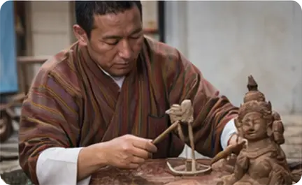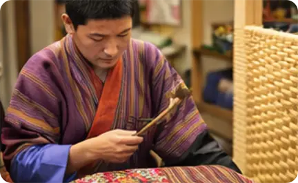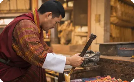 Lugzo is the traditional Bhutanese art of metal craftsmanship, representing skill, precision, and sacred artistry. Artisans create ritual objects, swords, utensils, and symbolic items using techniques passed down through generations, preserving both functionality and spiritual significance.